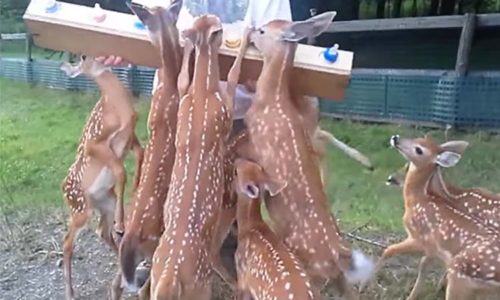 These baby deer appear to be so hungry and are really aggressive in drinking the milk!